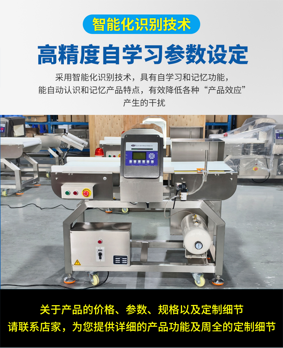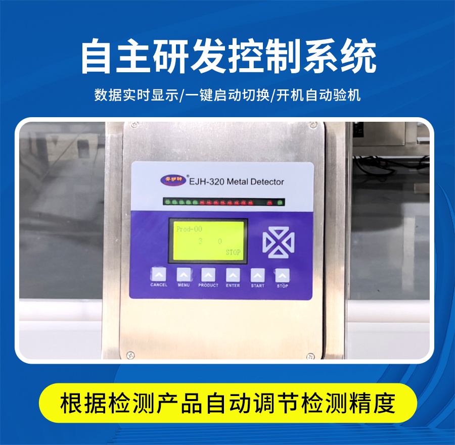 EJH-320系列全金屬檢測儀,可根據(jù)生產(chǎn)線需求配套定制窗口尺寸,檢測精度最大化,先進(jìn)數(shù)字信號處理技術(shù),有效克服產(chǎn)品效應(yīng),可精準(zhǔn)檢測鐵、不銹鋼、銅、鋁等金屬,靈敏度高達(dá)0.5mm,廣泛應(yīng)用在檢測肉類、水產(chǎn)、果蔬等食品加工過程中混入的金屬碎片、鐵絲等,精準(zhǔn)高效,為您徹底解決金屬異物隱患。