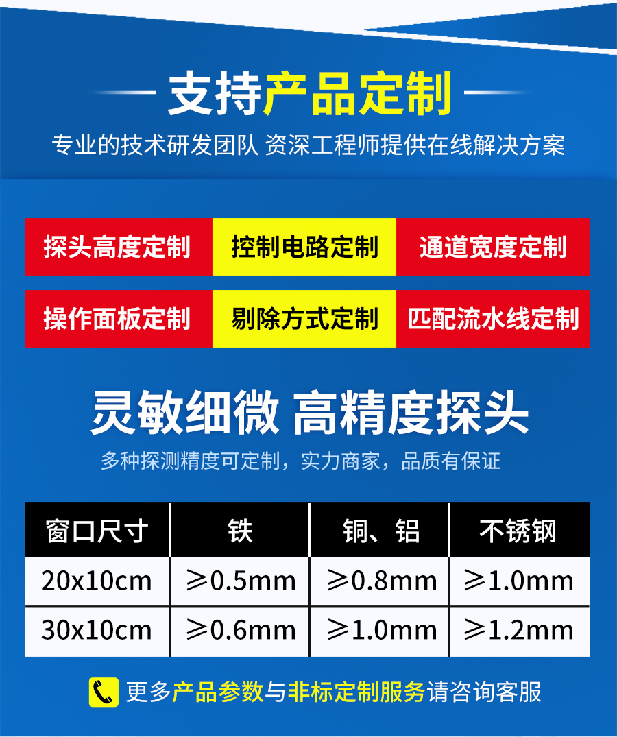 EJH-320P智能全金屬檢測儀精準(zhǔn)高效,采用先進(jìn)的數(shù)字信號處理技術(shù)和智能化算法,精準(zhǔn)識別各類金屬雜質(zhì),可檢測鐵、不銹鋼、銅、鋁等所有金屬,靈敏度高達(dá)0.3mm,即使是細(xì)微的金屬顆粒也能輕松識別,采用優(yōu)質(zhì)元器件和精密制造工藝,確保設(shè)備長時間穩(wěn)定運(yùn)行,降低維護(hù)成本,先進(jìn)的數(shù)字信號處理技術(shù),有效抑制產(chǎn)品效應(yīng)和環(huán)境干擾,確保檢測結(jié)果的準(zhǔn)確性。 廣泛應(yīng)用在工業(yè)生產(chǎn)、食品加工、紡織制造等領(lǐng)域,可根據(jù)不同行業(yè)、不同產(chǎn)品需求,提供通道式、落體式、管道式等多種型號,為企業(yè)解決有效檢測并剔除金屬異物的難題。