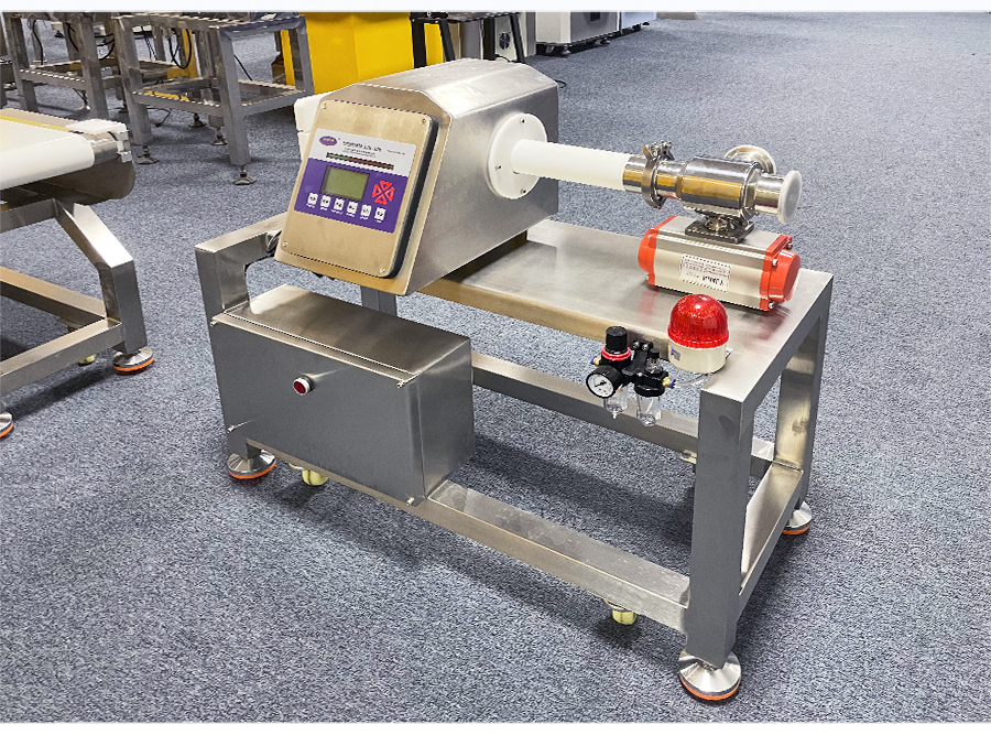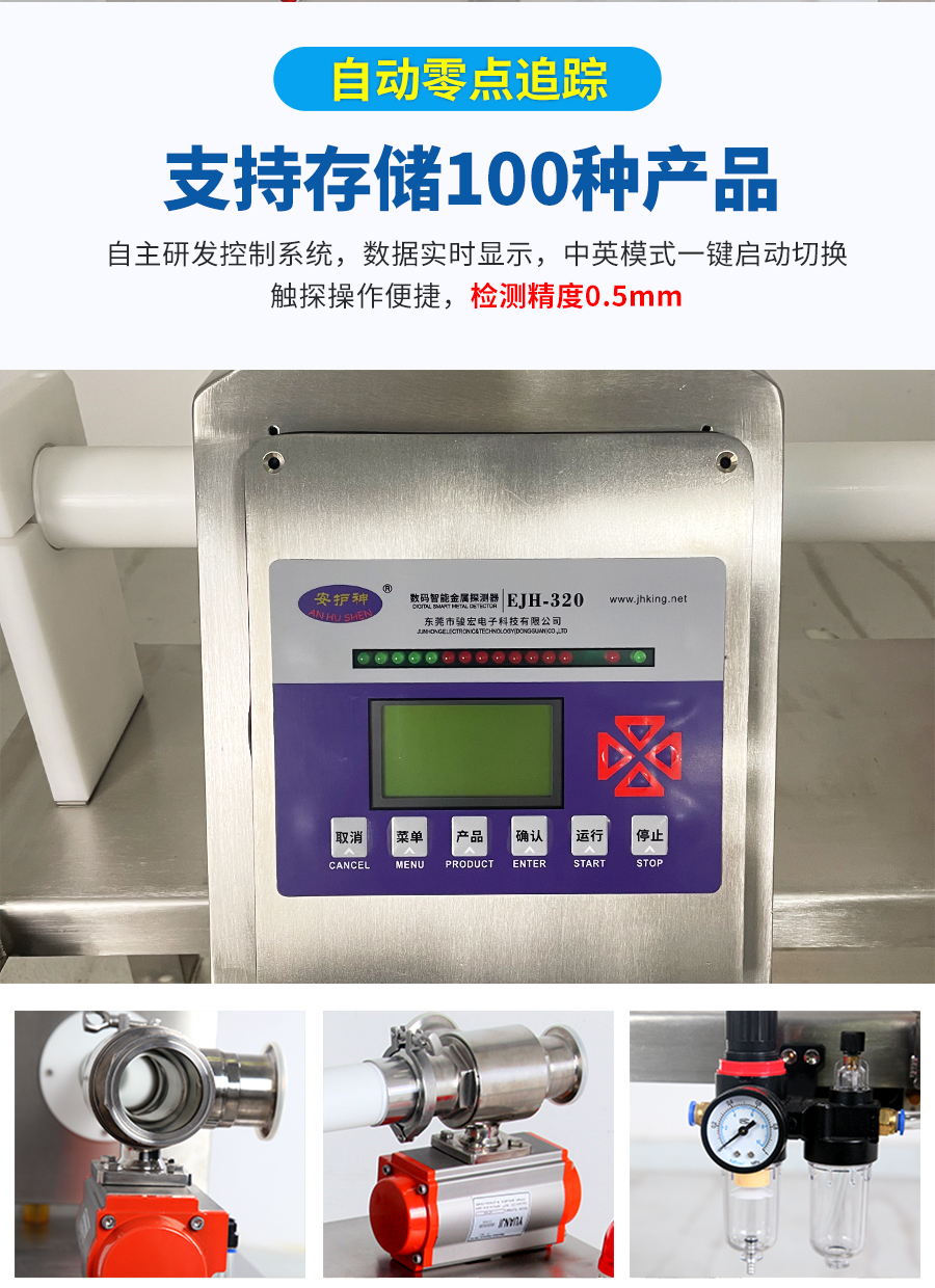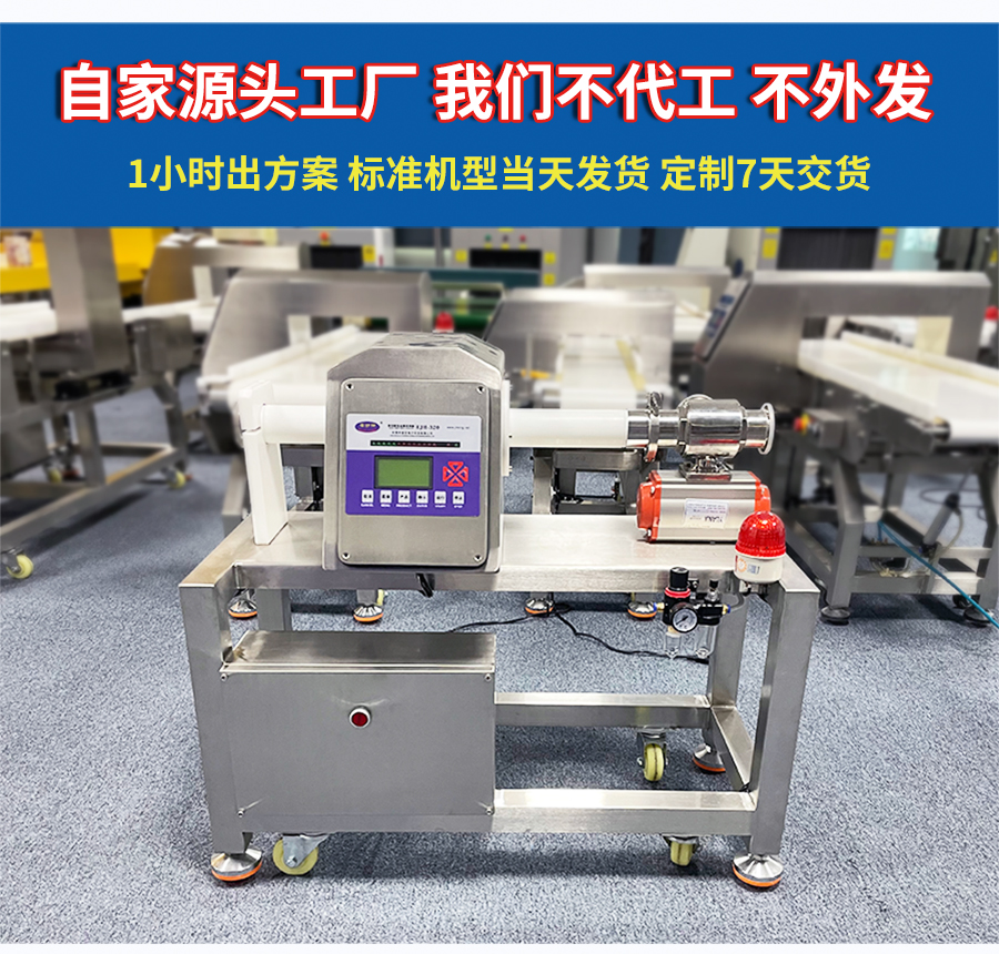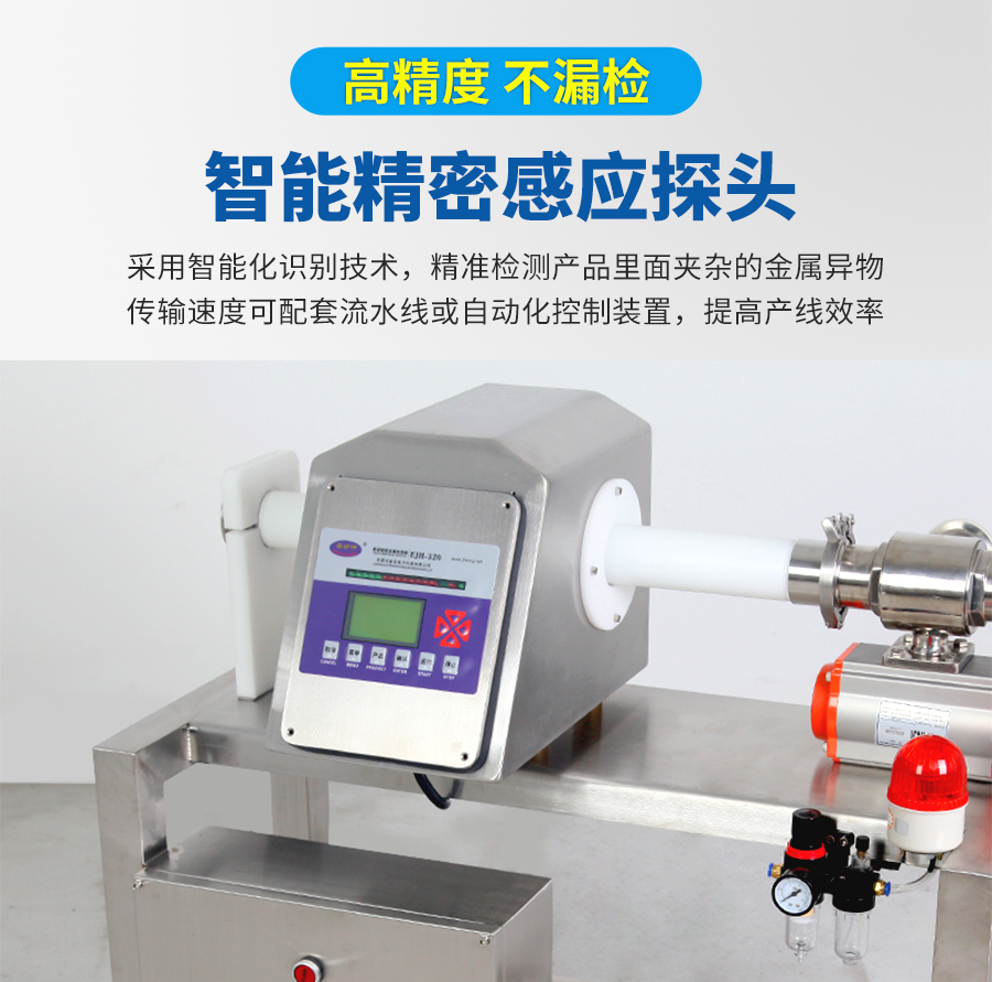 液體產(chǎn)品在生產(chǎn)過程中,可能會混入金屬屑、焊渣、設備磨損顆粒等金屬異物,不僅影響產(chǎn)品質(zhì)量,還可能對消費者健康造成威脅。傳統(tǒng)金屬檢測設備難以應對液體產(chǎn)品的流動性和導電性,檢測效果不佳。安護神液體金屬檢測機,專為液態(tài)產(chǎn)品設計,采用先進的數(shù)字信號處理技術和智能化算法,精準識別鐵、不銹鋼、銅、鋁等金屬異物,有效克服液體流動性和導電性帶來的干擾,可檢測微小金屬異物,靈敏度高達0.3mm